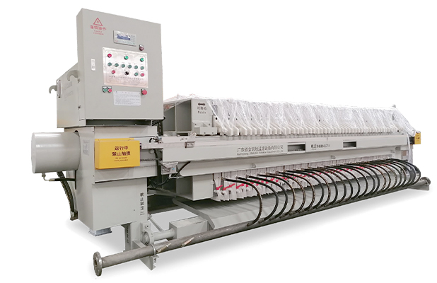 隔膜壓濾機是一種低耗能、效率高的間歇性的加壓過濾設備。用于各種懸浮液的固液分離,是依靠壓緊裝置將濾板壓緊,再將懸浮液用泵壓入濾室,通過濾布來達到將固體顆粒和液體分離。