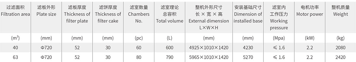 D720、D820、D1100型壓濾機,過濾壓力高(2.0——3.0mpa), 效率高,含水率低,適用于各行各業物料脫水處理?,F已應用于市政、礦山、紙業等多個大型固廢脫水處理行業。設備使用簡單,操作、維護方便,是理想的固液分離設備。專利技術(專利類型:發明、專利號:CN207980547U),圓形濾板,濾板面結構自主知識產權設計,使用壽命長,密封性強,不噴漿,耐高壓,過濾效果好,濾餅含固高。