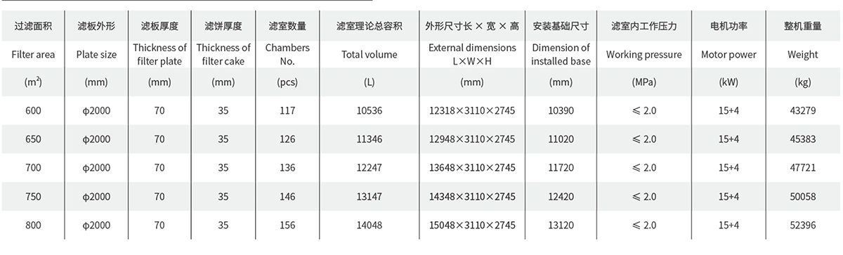 高壓壓濾機(jī)是集機(jī)、電、液于一體的固液分離機(jī)械設(shè)備,它主要由五大部分組成:機(jī)架部分、自動拉板部分、過濾部分、液壓部分和電器控制部分。可根據(jù)需求增加接液盤、翻板、儲泥斗、水洗系統(tǒng)、濾布曲張架、氣卸料等。其結(jié)構(gòu)較簡單,操作容易,運(yùn)行穩(wěn)定,保養(yǎng)方便;過濾面積選擇范圍靈活,占地少;對物料適應(yīng)性強(qiáng), 效率高,含水率低,適用于各行各業(yè)物料脫水處理。現(xiàn)已應(yīng)用于市政、礦山、紙業(yè)等多個(gè)大型固廢脫水處理行業(yè)。設(shè)備使用簡單,操作、維護(hù)方便,是理想的固液分離設(shè)備。專利技術(shù)(專利類型:發(fā)明,專利號:CN104260402A),圓形濾板,濾板面結(jié)構(gòu)自主知識產(chǎn)權(quán)設(shè)計(jì),使用壽命長,密封性強(qiáng),不噴漿,耐高壓,過濾效果好,濾餅含固高。
