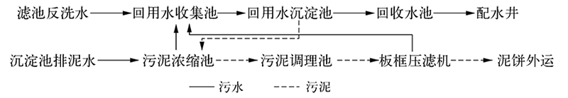 水廠污泥處理工藝流程示意圖